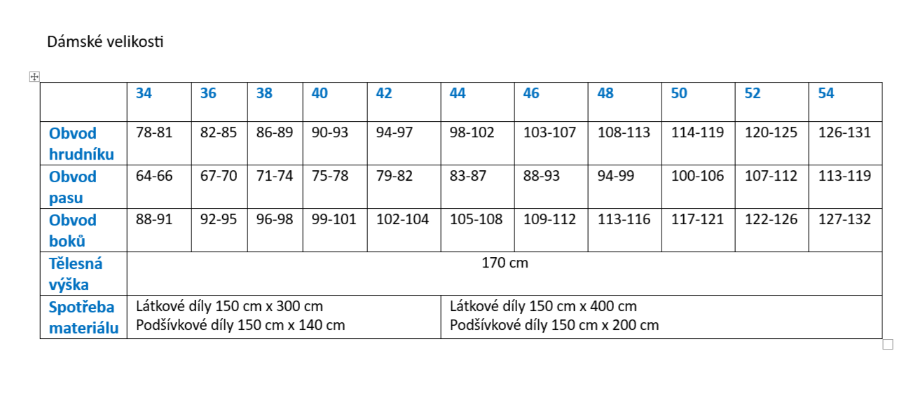 PDF Střih odesláno elektronicky velikost 34 - 54 materiál tkanina