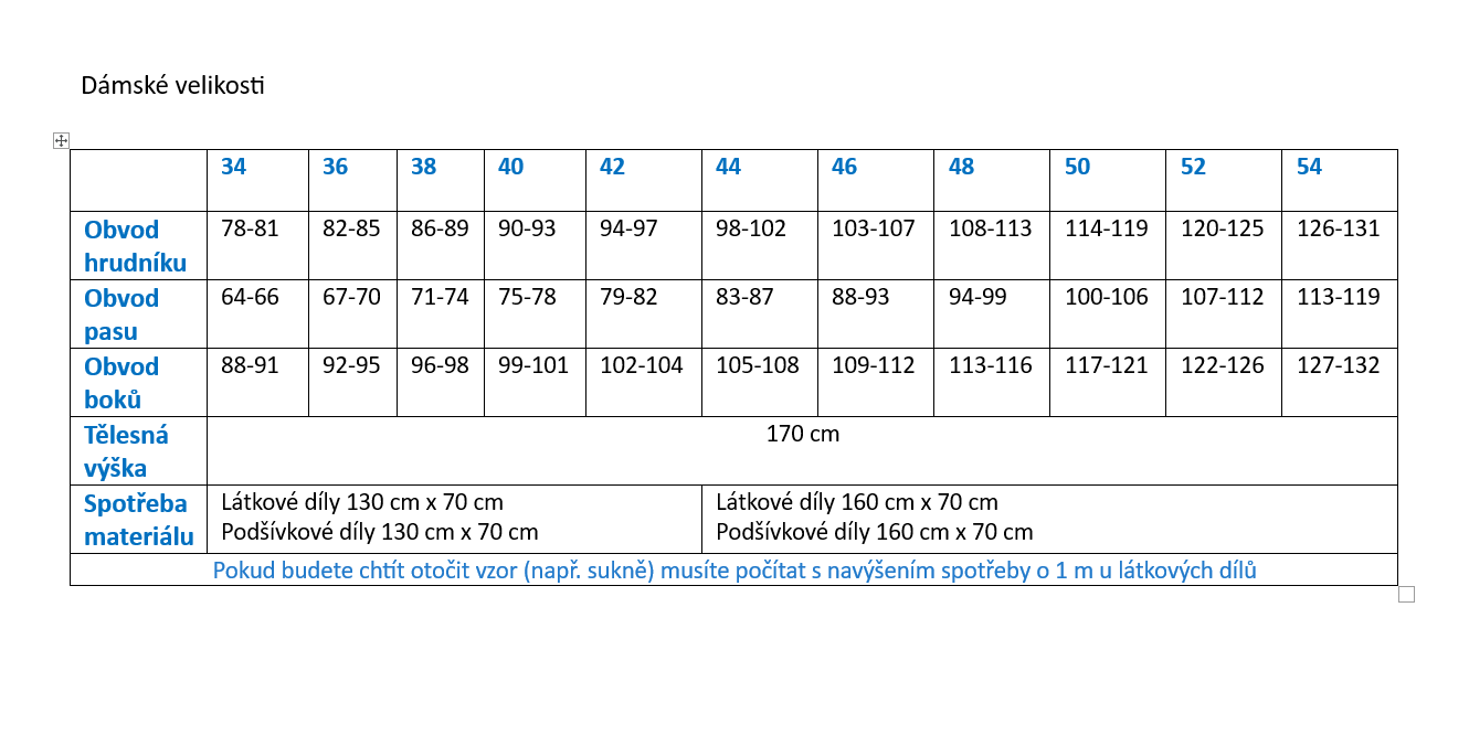 PDF Střih odesláno elektronicky velikost 34 - 54 materiál kostýmovka